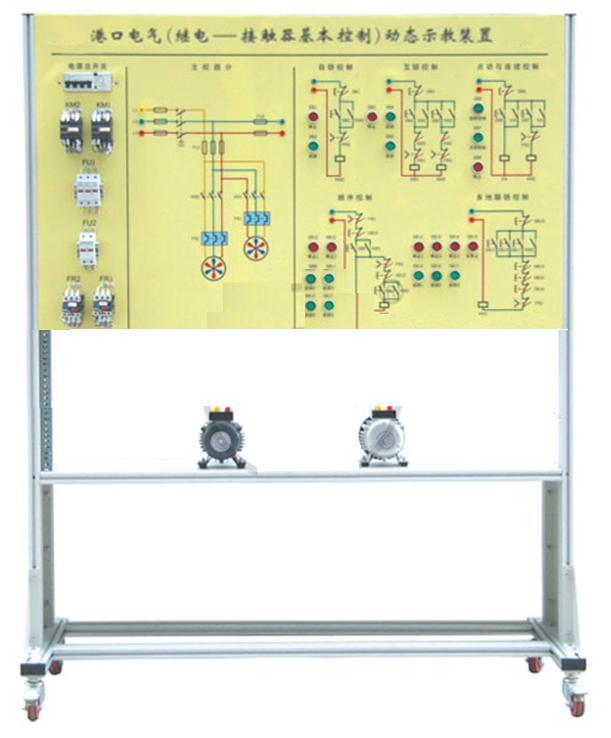 “港口電氣繼電-接觸器基本控制動態實訓裝置”是針對教學大綱要求和相關港口專業的教材內容而設計。本裝置由港口電氣器件、彩色半透明噴繪PVC原理圖、單片機動態演示電路等構成;本裝置通過理論講解、動態演示、動手操作,可以了解繼電-接觸器基本控制的基本理論,掌握港口電器自動化系統的工作原理和工作流程。