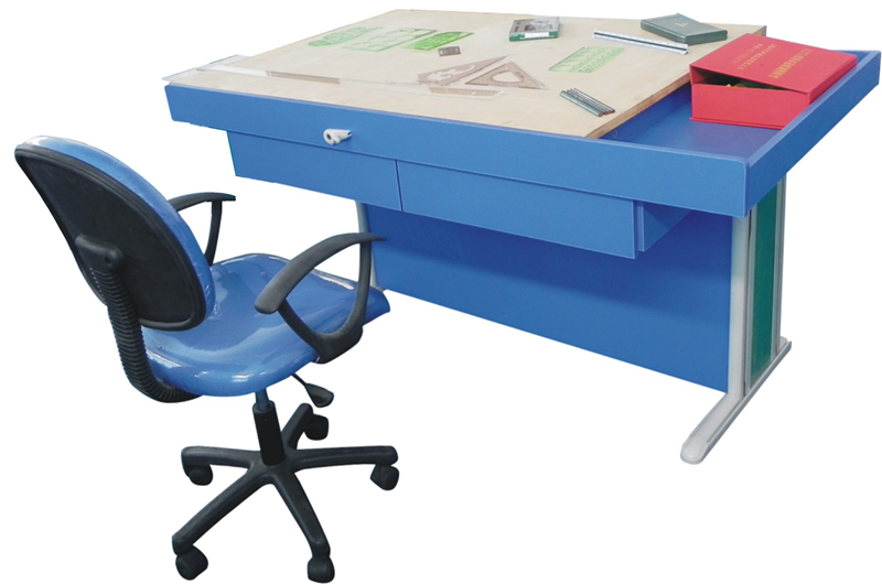 多功能實用繪圖桌固定繪圖桌支架采用鋼架結構,桌面板采用東北優質加厚椴木材料的1號繪圖板,并可調節傾角0°-85°,桌面下部有儲物隔板,可以放置書包、文具和圖紙等物品,牢固耐用,適用于機械制圖繪圖和繪畫專業,在院校內實用和經濟的一款多功能和升降繪圖繪畫桌,有較強的多種行業和課程的兼容性和普及性。