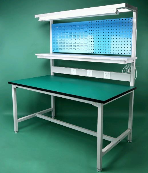 面板:采用優(yōu)質(zhì)防靜電膠皮全覆蓋桌面,戴育防靜電桌面通過了《國家電子行業(yè)標(biāo)準(zhǔn)SJ/T10694-2006規(guī)定》的點對點電阻防靜電測試。防靜電膠皮厚2mm。面板采用三聚氰胺聚合板,50mm的加厚桌面可定制;