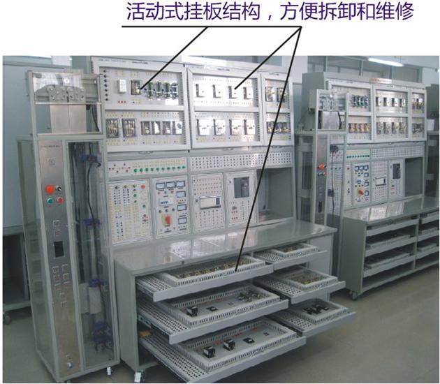 1、模型電梯設4層4站,由模擬井道架、轎廂、對重、曳引機、電梯門、門電機、各層站外呼盒及主要安全裝置組成,固定設置在實驗臺側面。模擬井道架內需配置用于檢測轎廂位置的樓層感應器、平層感應器(與實際電梯相似)等,其接線端子引至模擬井道架的插接孔上。井道架采用金屬材料為主體支架,有機玻璃封閉。★設備必須采用臺式結構,設置活動式抽屜電氣板,每層抽屜板均設置有公共接線板(總線型接線方式,總線連接點數必須達到120點以上),抽屜電氣板之間采用工業坦克鏈連接,公共抽屜板連線采用真實電梯多芯隨行電纜。