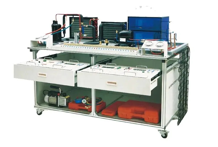 1.該裝置集制冷空調、制冷系統電接線、壓力檢漏、抽真空、 充注制冷劑與運行調試于一體,包含了制冷系統維修的全部步驟,能滿足實訓教學、實際工程 訓練需要。