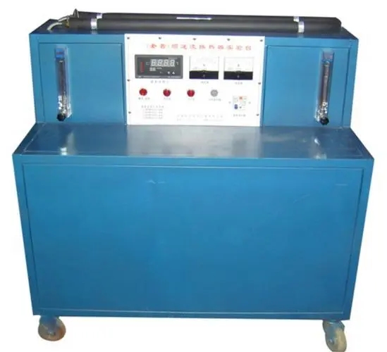 電熱加熱器水箱,套管換熱器,不銹鋼冷、熱原水箱,玻璃轉子流量計,順、逆流管閥,加熱由固體調壓模塊無級調節,由8路萬能信號輸入巡檢儀顯示的溫度測試系統等。
