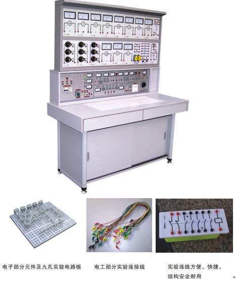 本設備是我廠參照國外同類產品,按照國內實驗教學大綱的要求研制的最新產品,它可滿足大、中專院校、職業學枚、技校電工學、電工原理、電子技術等課程的實驗教學要求。一套設備由12臺實驗臺、一臺電源控制臺組成,一臺二座。實驗臺由實驗屏、控制柜、實驗桌組成。實驗屏上做電工實驗,實驗桌面上作電子技術實驗。實驗屏由若干實驗單元盒組合而成,單元盒板面電路符號用最新國家標準,每一單元盒在實驗屏上的位置可任意互換,可根據實驗需要方便地組合成不同的實驗線路,實驗方便、快捷,能使學生在短時間內較快,較好地完成實驗。實驗桌面上配有通用九孔電路板,裝有元件的透明元件盒在其上可如意接插實驗電路。控制柜提供三相四線制電源、三相、單相可調電源、雙路可調直流穩壓穩流電源、脈沖信號、正弦波、方波、三角波信號等。為保證在實驗中人身及設備的安全,該實驗臺設有漏電及過載保護裝置。