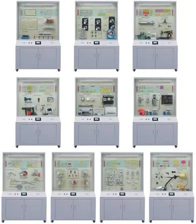 5、柜頂部裝有照明日光燈,柜背設(shè)有對(duì)開門,有利維護(hù)設(shè)備和方便維修。柜下部設(shè)有柜箱,方便存放單個(gè)模型、實(shí)驗(yàn)箱及相關(guān)實(shí)驗(yàn)文檔。柜底裝有萬(wàn)向輪,方便移動(dòng),符合人機(jī)工程要求。