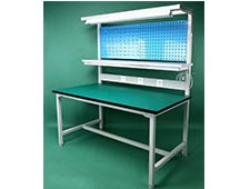 面板:采用優質防靜電膠皮全覆蓋桌面,戴育防靜電桌面通過了《國家電子行業標準SJ/T10694-2006規定》的點對點電阻防靜電測試。防靜電膠皮厚2mm。面板采用三聚氰胺聚合板,50mm的加厚桌面可定制;