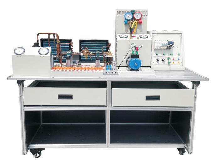 1.該裝置集制冷空調、制冷系統電接線、壓力檢漏、抽真空、 充注制冷劑與運行調試于一體,包含了制冷系統維修的全部步驟,能滿足實訓教學、實際工程 訓練需要。
