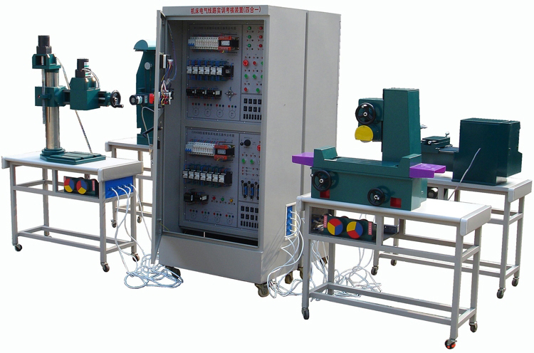 智能型四合一機床電氣技能實訓考核鑒定裝置能夠開展多種機床電氣控制線路的維修。智能型四合一機床實訓考核裝置把機床的電氣部分和機床的機械部分有機地連接在一起,采用實際工業機床上應用的電器元件及機床半實物仿真模型,將機床所有的動作全部展示出來。此外它還提供了全方位真實的機床電氣故障排除的技能訓練,可以人為的設置故障點,僅通過網絡切換就可以設置相應的故障點,有效地提高了學生對機床設備的維修技能。本裝置外形美觀,操作方便,直觀性強,教學更加形象生動,更接近工業現場化,適合維修電工初、中、高級技能鑒定中有關機床電氣部分的培訓考核。