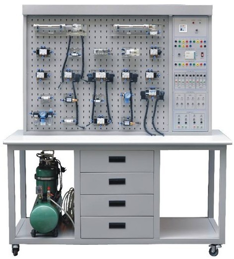 2、氣動元件配備:空氣壓縮機、空氣過濾、減壓、油霧器三聯件,減壓閥,手動換向閥,電磁換向閥,氣控換向閥,節流閥,單向節流閥,快速排氣閥,或門型梭閥,單作用氣缸,雙作用氣缸,旋轉氣缸等。